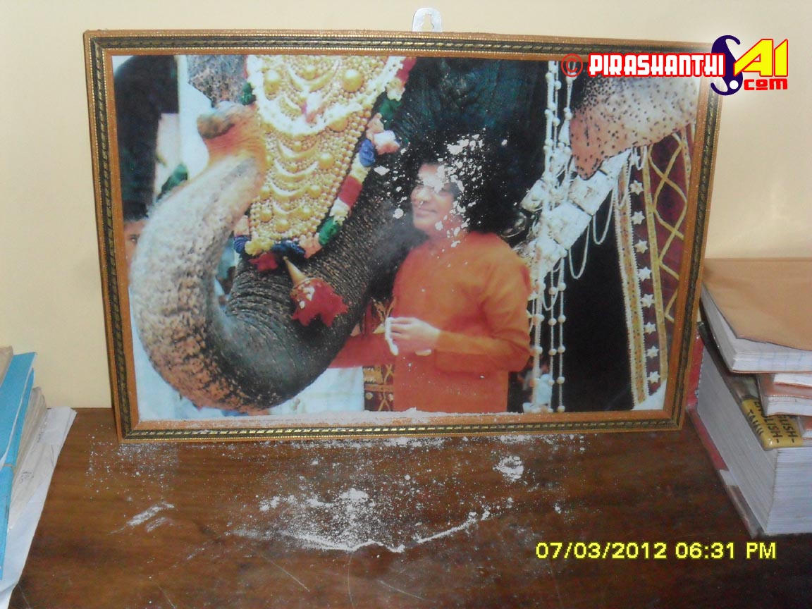 2012.03.05 திகதி மாலை 6.00 மணியளவில் சாயி கீதாவுடன் உள்ள பாபாவின் படத்தால் வீபூதி வெளிவந்தது.