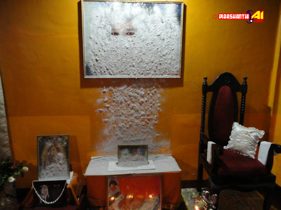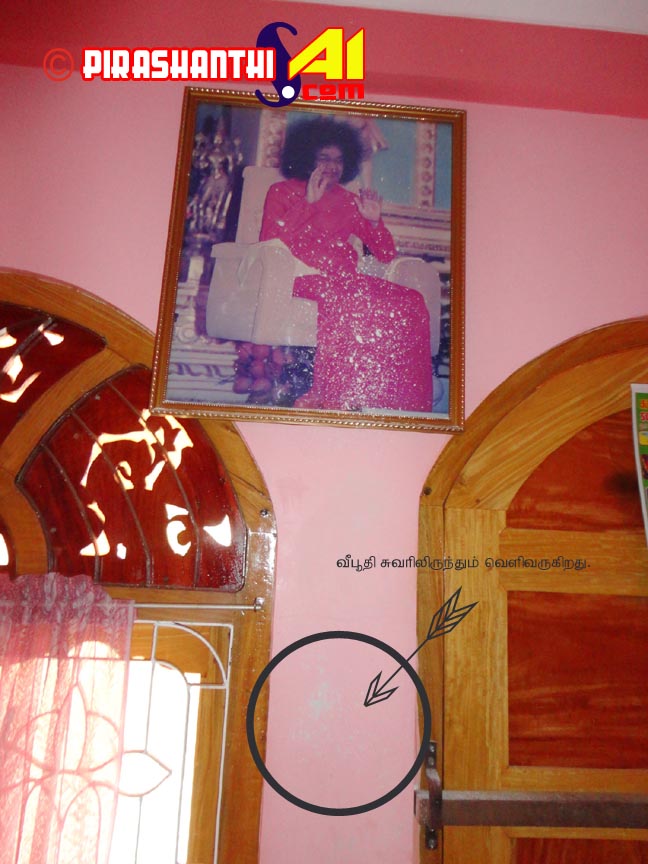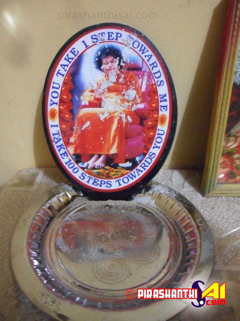 யாழ்ப்பாணம் சாயி நிலையத்தில் யாழ்ப்பாணம் பகவான் ஸ்ரீ சத்திய சாயி சேவா நிலையத்தில் பகவானின் 88 ஆவது அவதார தின நிகழ்வின் மறுநாள் நிலைய பிரார;த்தனை மண்டபத்தில் உள்ள ஈஸ்வரம்மாவின் படத்தில் விபு+தி வரத் தொடங்கியது.