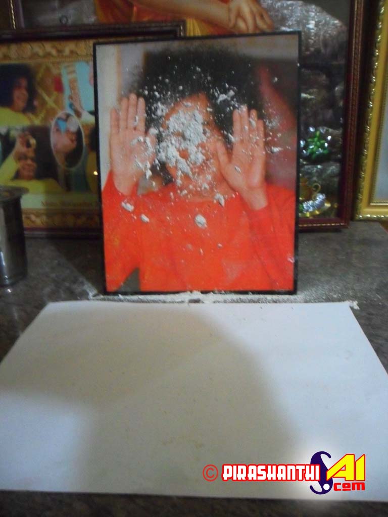 யாழ்ப்பாணம் சாயி நிலையத்தின் மற்றுமொரு படத்திலிருந்து வீபூதி 2012.2.5 மாலை பஜனை முடிவின் பின்ன்h வெளிப்படத் தொடங்கியது.
