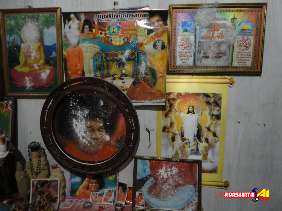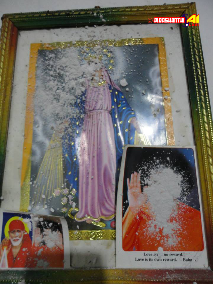 திருகோணமலையில் வீபூதி வெளிவந்த சாயி அன்பர் வீட்டில் 20.2.2012 சிவராத்திரி தினமன்று சீரடி சாயி பாபாவின் படத்திலிருந்து வீபூதி வெளிவந்தது. அதே வேளை மாலை வளர்ந்த படத்திலிருந்து அமிர்தம் வெளிவந்து காய்ந்த நிலையில் உள்ளது.